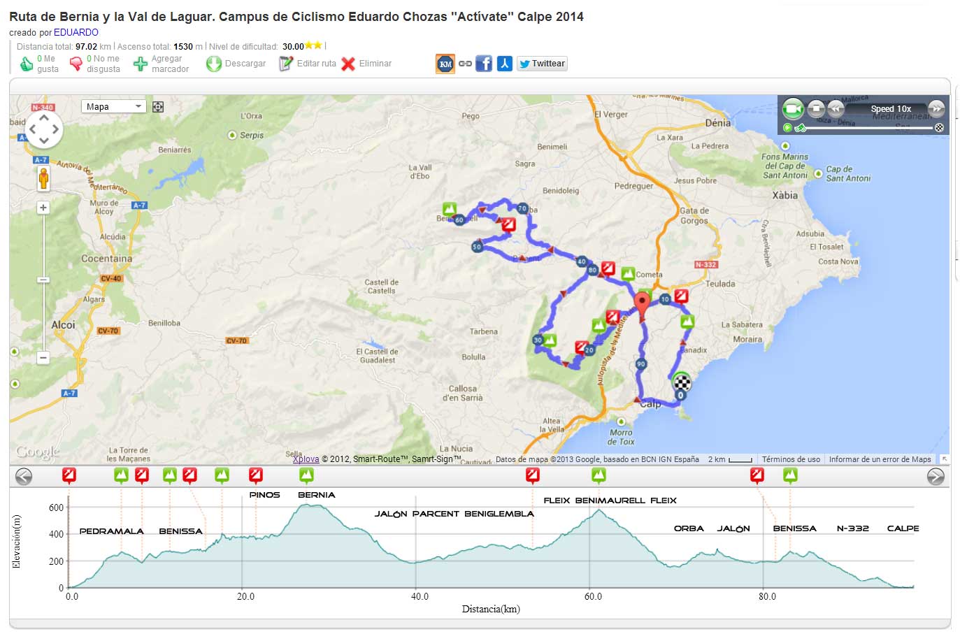 3.- Sábado día 22 de febrero. Ruta de Bernia y la Val de Laguar. Distancia total: 97.02 km | Ascenso total: 1530 m | para saber + ... xplova.com