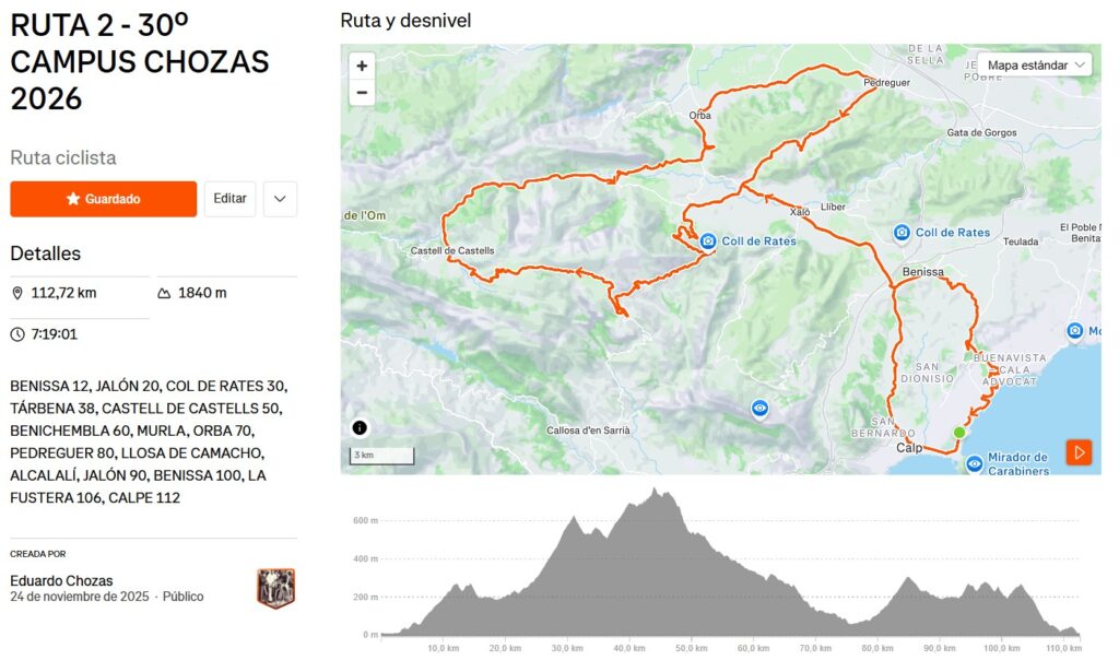 RUTA 2 – RUTA 2 – 30º CAMPUS CHOZAS 2026 | Ruta ciclista de 112,7 km en Strava